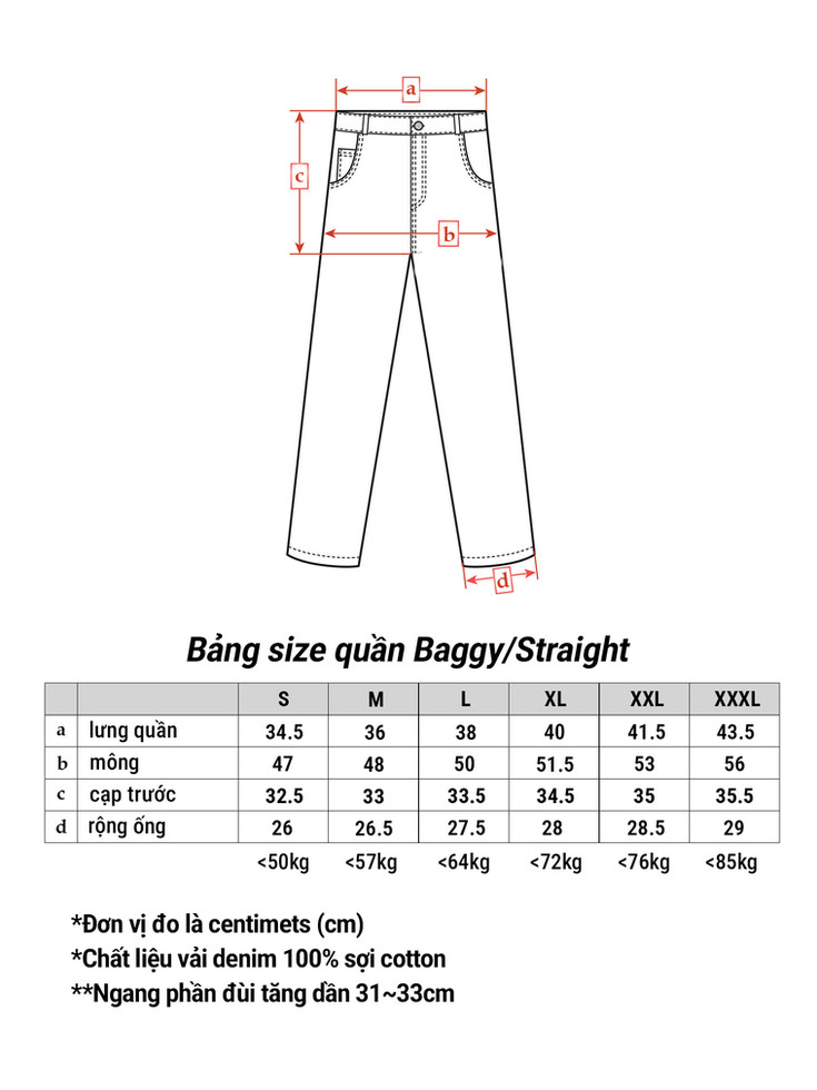 *Model nam 178cm và các size tăng dần từ 103~106cm